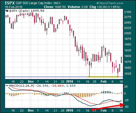 No sé si esto ahora mismo (13 de febrero, a mercado cerrado) es o no es rebote. Querría ver un cierre por encima de 1885 para poder llamarlo como tal tranquilamente. De momento es un «posiblemente acabe siéndolo».